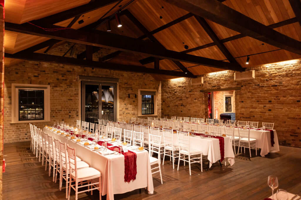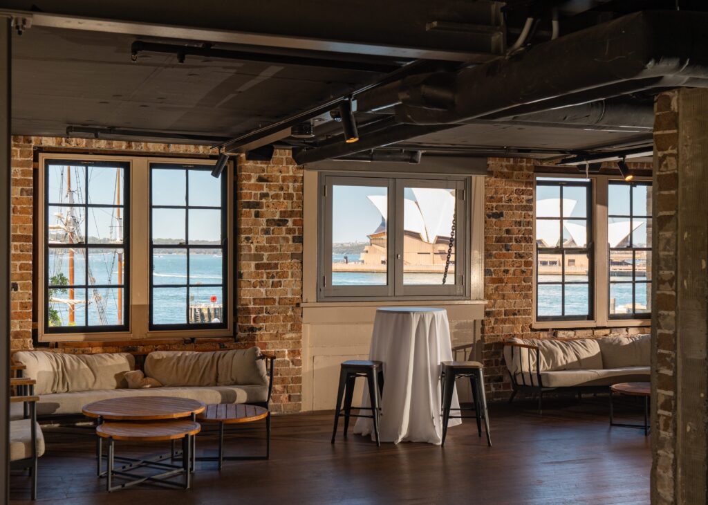 Set within the heritage-listed Campbell’s Stores and framed by views of the Sydney Opera House and Sydney Harbour Bridge, Watersedge has been meticulously restored to create one of Sydney’s most dynamic event spaces. Historic sandstone blocks and exposed timber beams celebrate the venue’s storied past, while modern amenities ensure every event is delivered with comfort, sophistication, and ease.