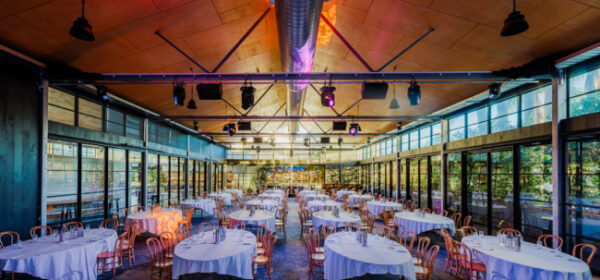 - A large Glasshouse venue with glass-panel walls and extra-high ceilings